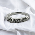 14K White Gold 0.27 ctw – 36 Total Round Natural Diamond – Weave Milgrain Edge Stackable Fashion Band