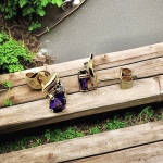 14K Yellow Gold 2 - 6 x 4 mm Oval Genuine Amethyst & 0.02 ctw - 2 total Round Natural Diamond - Fashion Drop Friction Back Post Earrings