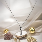 14K White Gold 0.15 ctw - 3 total Round Natural Diamonds – 5 mm Circle Top hinged to a 4 mm Circle with 19 mm Drop Trident Pendant. Pendant supplied on an 16" 14K White Gold 0.9 mm Diamond-Cut Cable Chain