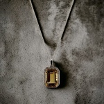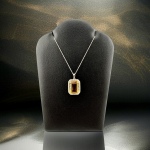 14K White Gold Emerald Cut Genuine Citrine Center Stone & 0.20 ctw - 48 total - Round Diamond Halo Fashion Pendant on an 18" Fine Machine Rope Chain
