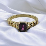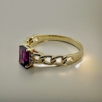 14K Yellow Gold 6.6 x 4.9 mm Emerald Cut Genuine Rhodolite Garnet Center Stone & 0.04 ctw – 6 total - Round Natural Diamond Curb Link Detail Shank Fashion Ring